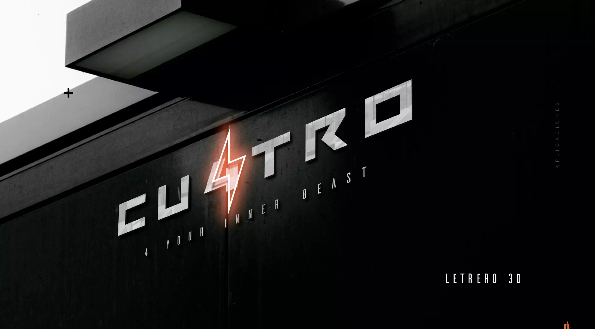Así como los 4 elementos, Cu4tro tiene 4 disciplinas que lo definen como un lugar en el que la energía se mueve al ritmo de las rutinas de box, calistenia, crossfit y funcional. Para conceptualizar esas disciplinas, colocamos un relámpago en tonos enérgicos que toma el lugar de la “A” y puede aplicarse de manera replicable en cualquier lugar.