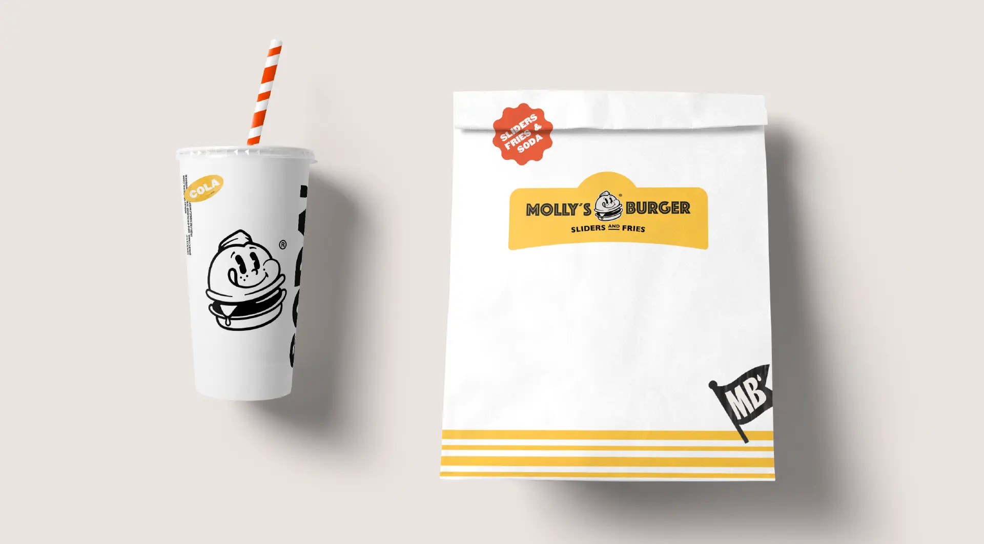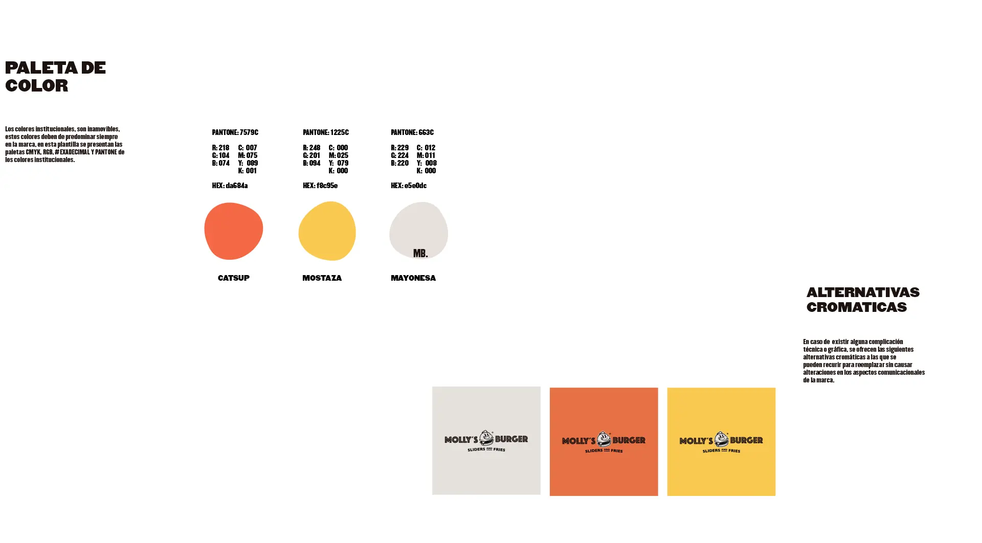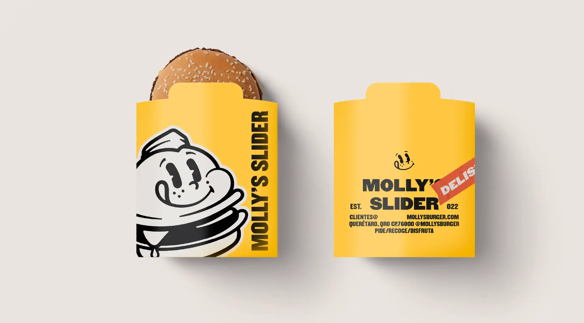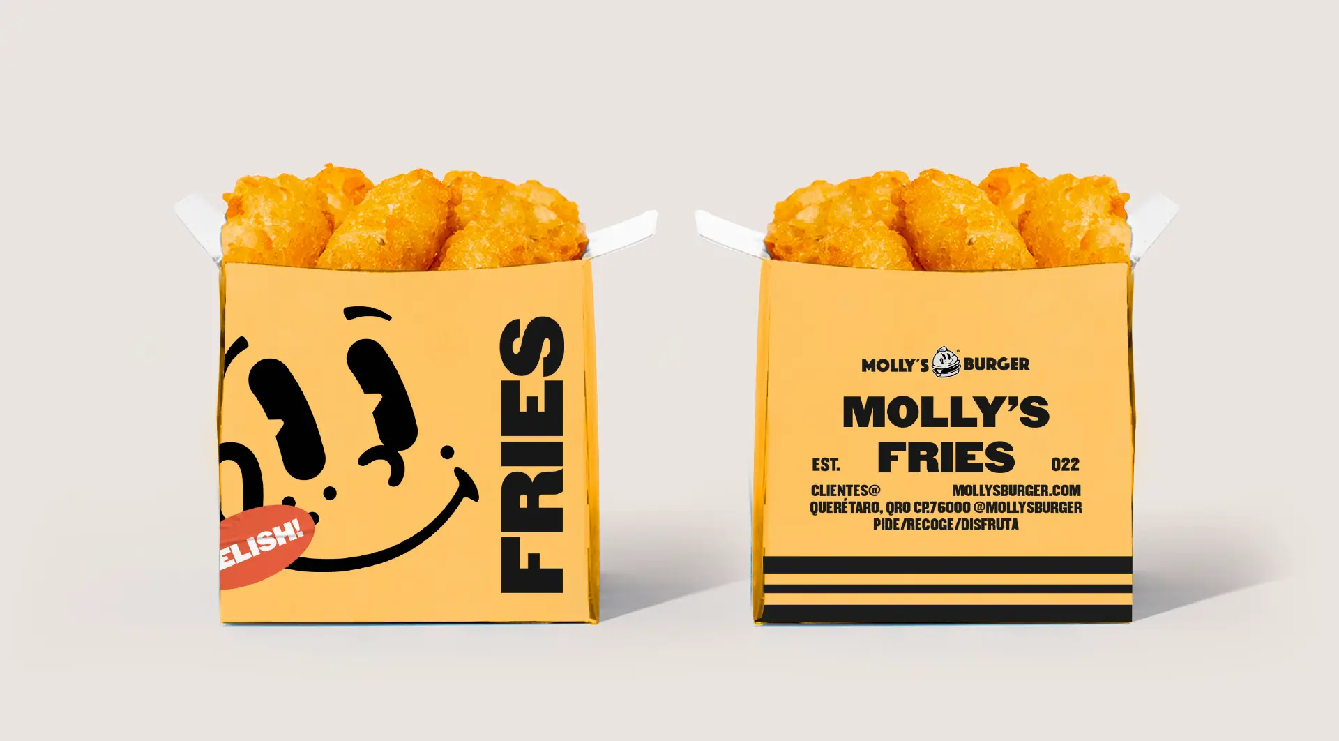 La planificación del branding “Mollys Burger” busca entregar lo mejor de la época dorada, reflejando el lado de la felicidad en el logotipo a través de un diseño retro y dando uso al color amarillo que representa este nuevo proyecto de hamburgesas mini.