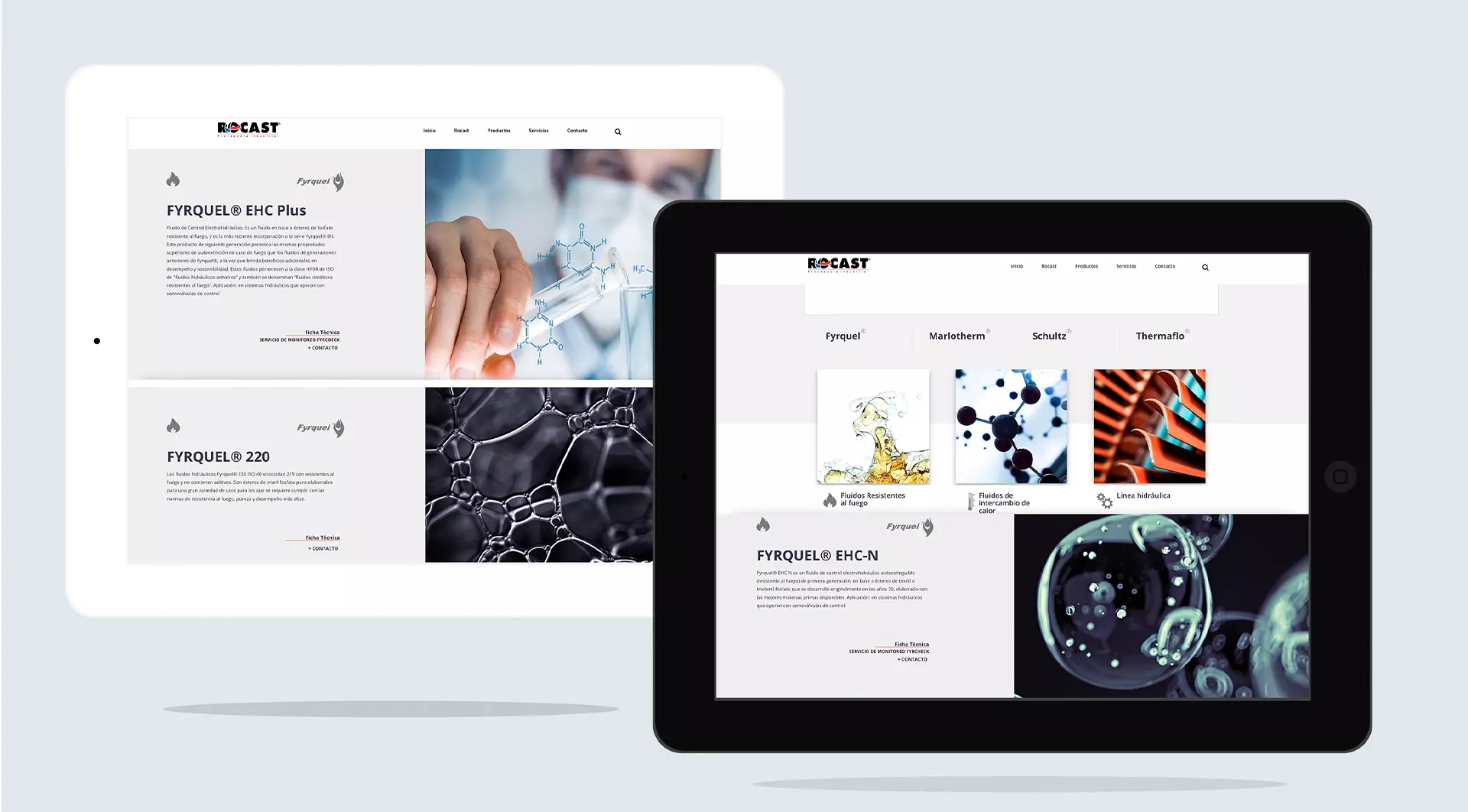 Colaboramos con Rocast, una empresa con más de 30 años de experiencia brindando servicio al sector industrial y con productos que hasta el día de hoy, son los más especializados con los que hemos trabajado: fluidos de intercambio de calor y fluidos resistentes al fuego.